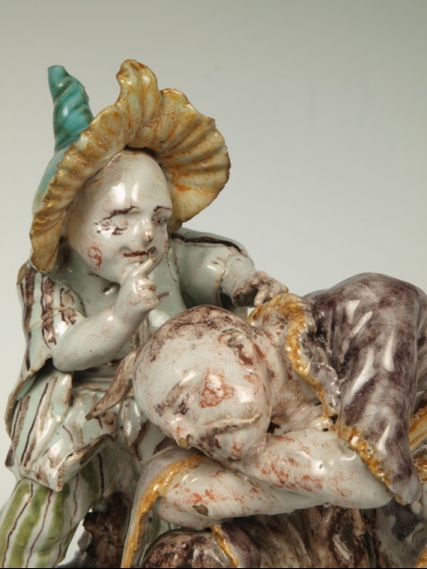 gruppetto in maiolica dipinto in policromia a gran fuoco