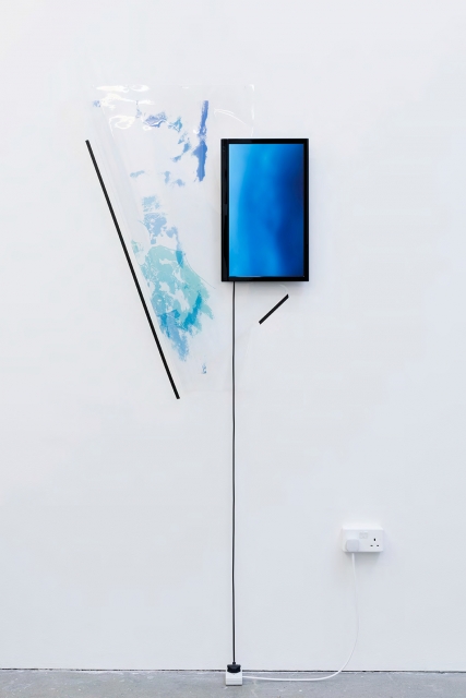 Stampa inkjet su foglio acetato, jpg proiettato su schermo 22”, cavo, chiodi, nastro adesivo, dimensioni variabili